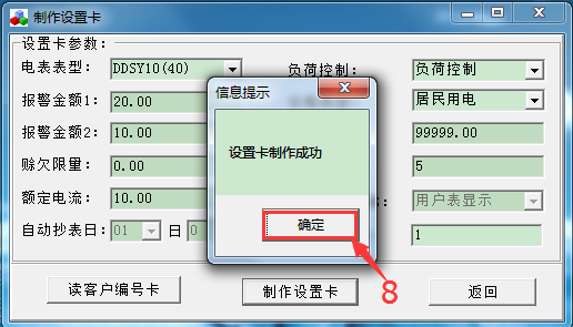 當(dāng)系統(tǒng)提示“設(shè)置卡制作成功”就可以把讀卡器里面的卡拔出來了,標(biāo)記上“設(shè)置卡”。(“設(shè)置卡”是通用的,三相四線1.5-6A外接互感器的電表類型除外)
