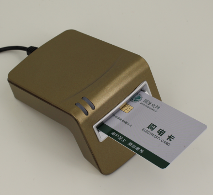 1.把讀卡器的USB接口插上電腦,吧IC卡芯片朝上插入讀卡器。如下圖: