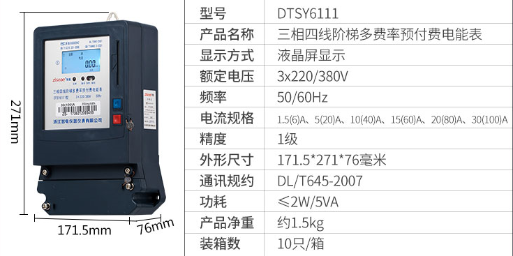 DTSY6111型三相四線階梯多費率預付費電能表(以下簡稱“儀表”)是根據居民實際用電狀況所設計、制造。它具有較高的準確度和可靠性。