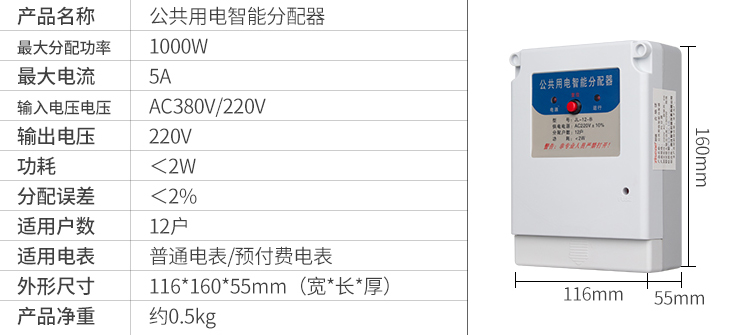 若有用戶的空氣開關(guān)斷開或未接到用電分配器上時,分配器自動識別該用戶未用電而不參與公共用電分配。