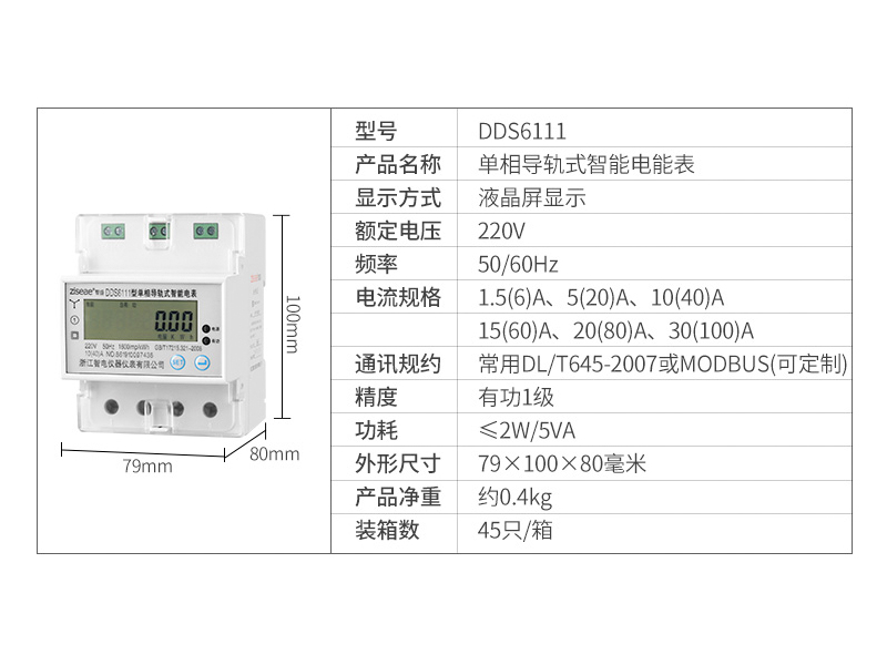 型號:DDS6111單相導軌式電表-4P(RS485)