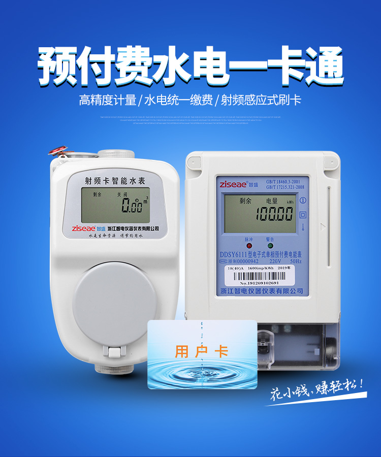 我公司生產(chǎn)的智能水表與電能表實現(xiàn)一卡通,用戶只需一張卡,即可同時管理家中所用的電表、水表。